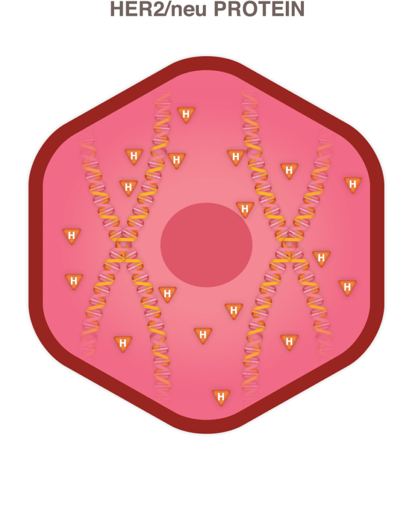 Healthy HER2 receptors are the proteins that help manage how a breast cell grows, divides, and repairs itself. However, in about a quarter of all breast cancer patients, the HER2 gene isn’t functioning properly. It makes an excess number of copies of itself in a process known as “HER2 gene amplification.” Then these extra genes instruct the cells to make too many HER2 receptors, which is called “HER2 protein overexpression.” The ultimate result is that breast cells grow and divide in an uncontrolled fashion.