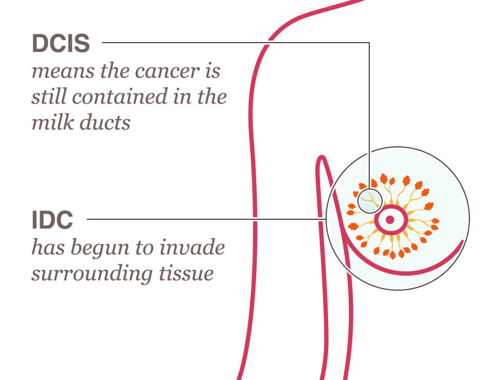 The abnormal cancer cells that began forming in the milk ducts have spread beyond the ducts into other parts of the breast tissue. Invasive cancer cells can also spread to other parts of the body. It is also sometimes called infiltrative ductal carcinoma.